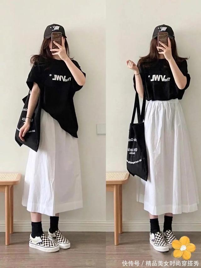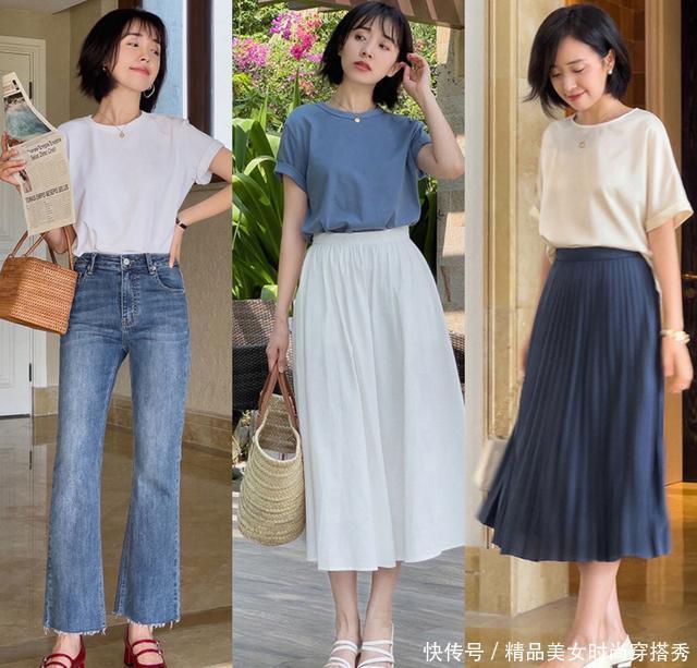 所以使用裙装和使用裤装搭配的T恤,往往会给人带来两种截然不同的感觉。裙装会显得更加温柔一些,而裤装则会显得更显干练、大气。